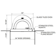 - Glass tiled oven with stainless steel hearth, vent, and flange mount
